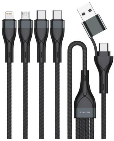 4smarts USB-A/Type-C - Type-C/Lightning/micro USB Kábel 1.2m - Fekete