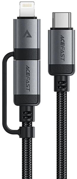 ACEFAST - Adatkábel (C20-01) - USB-C Type-C-hez, Lightning, 60W, Gyors töltés, Hajlításálló, MFi Tanúsítvánnyal, 1.2m - Fekete