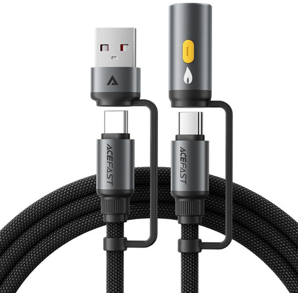 ACEFAST - Adatkábel (J6) - Multifunkciós, Gyors töltés, USB/USB-C - Type-C/Szivargyújtó, 60W, 3A, 1.2m - Fekete