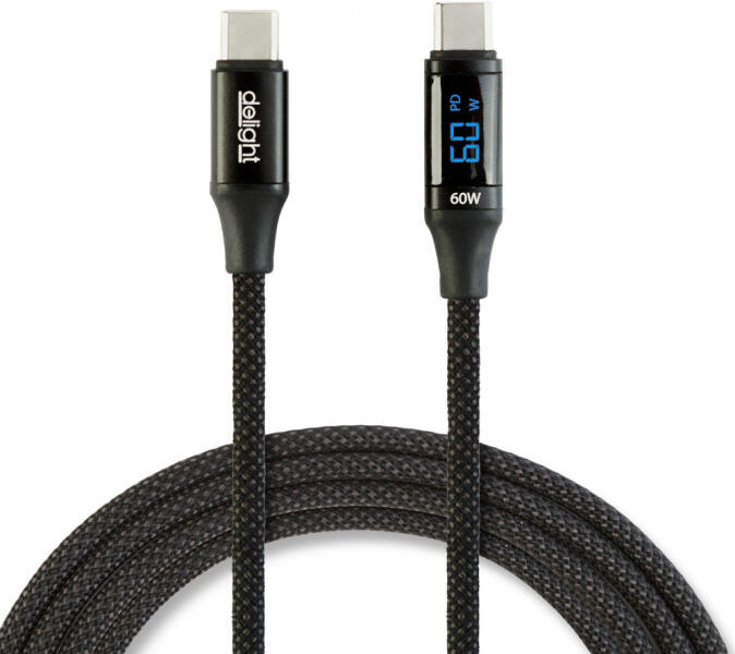 Mindkét végén USB-C csatlakozóval szerelt adatkábel mobiltelefonokhoz, tabletekhez. A töltőcsatlakozóba épített kijelző segítségével nyomonkövetni a pillanatnyi töltési teljesítményt. Gyors és kényelmes adatátvitelt biztosít PC, notebook és a mobilkészülékek között. Használható gyorstöltésre is a megfelelő csatlakozóval ellátott hálózati töltőfejjel vagy autós aljzattal. Az ellenálló borításnak köszönhetőn nehezebben törik meg hagyományos társainál. Ideális lehet Type-C aljzattal szerelt mobiltelefonok és tabletek töltésére. (Notebookok töltésére használata nem javasolt!)