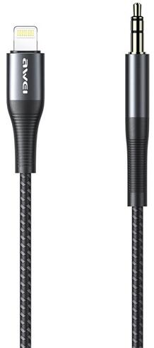 Awei iPhone 14 Plus AWEI CL-116L audió kábel 3.5mm jack - lightning, cipőfűző, FEKETE CL-116L_B (CL-116L_B)