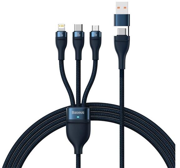Baseus Adatkábel 2in1 USB/Type-C-3in1 Lightning/MicroUSB/Type-C, 5A, Gyorstöltő, 100W, 120 cm Sötétkék