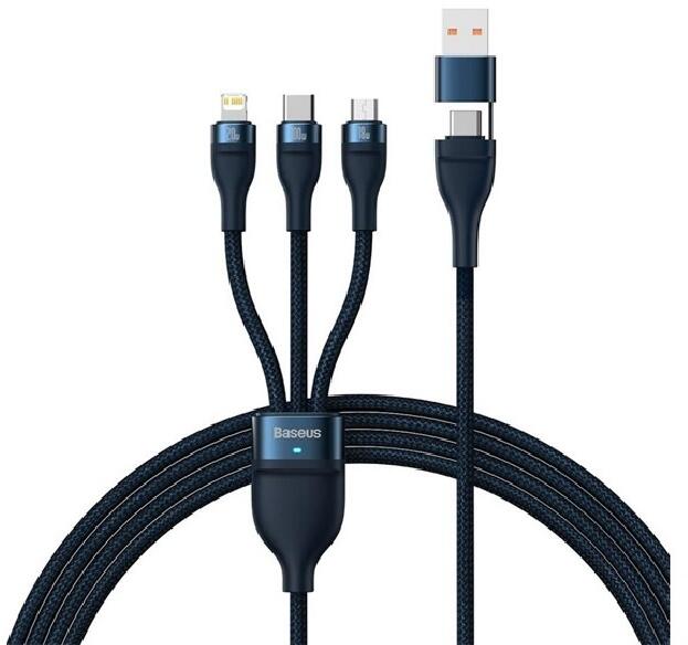 Baseus adatkábel (2in1 USB/Type-C - 3in1 lightning/microUSB/Type-C, 5A, gyorstöltő, 100W, 120cm) SÖTÉTKÉK