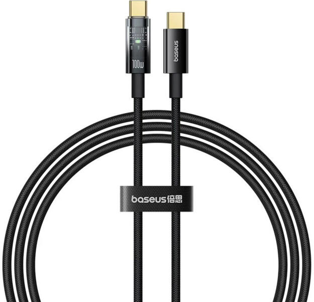 Baseus - Adatkábellel Felfedező (P10319704111-00) - Type-C, Gyors töltés, 100W, Automatikus leállítással, Nejlon, 2m - Fürt Fekete