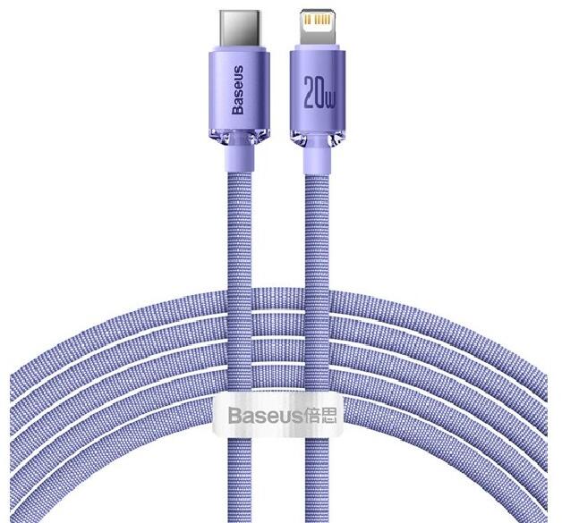 Baseus CRYSTAL SHINE adatkábel (Type-C - lightning, 20W, PD gyorstöltő, 200cm, cipőfűző) LILA