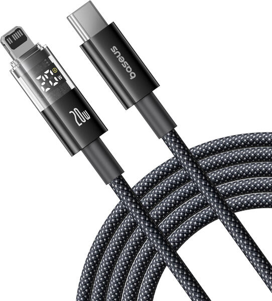 Baseus - Data Cable Display 2 (P10382703121-00) - Gyors töltés, Type-C - Lightning, Digitális kijelző, 20W, 1m - Kozmikus Fekete