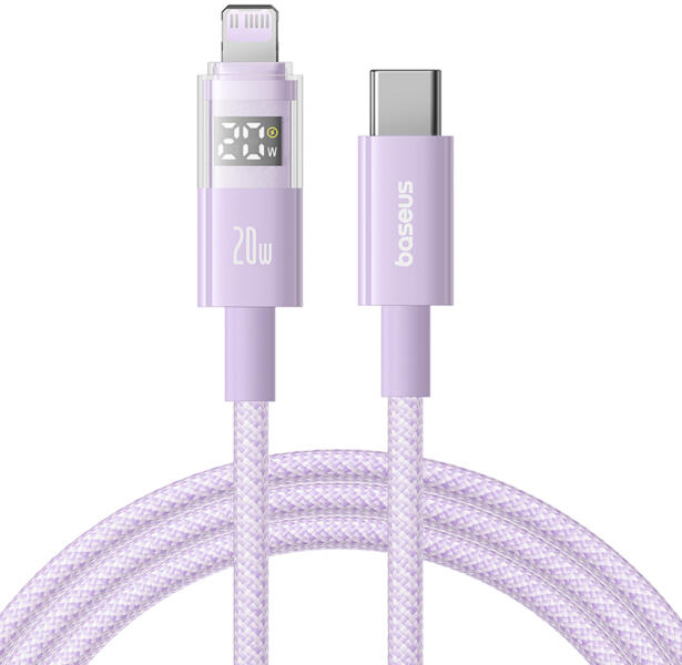 Baseus - Data Cable Display 2 (P10382703511-01) - Gyors töltés, Type-C, Lightning, Digitális kijelző, 20W, 2m - Nebula Lila