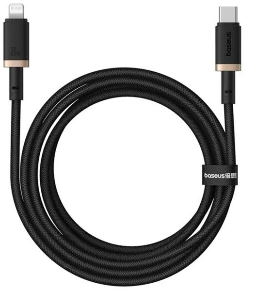 Baseus - Dura Series Adatkábel (P10377800U01-02) - Type-C - Lightning, Gyors töltés, PD 20W, Nylon, 2m - Arany / Fekete