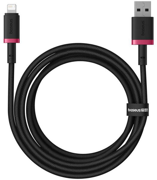 Baseus - Dura sorozat adatkábel (P10377801U01-03) - USB Lightning csatlakozó, Gyors töltés, 2.4A, 480Mbps, Nejlon, 2 m - Piros / Fekete