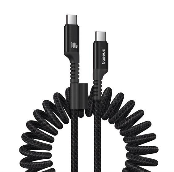 Baseus Fish-Eye Adatkábel Type-C-Type-C, 100W, PD Gyorstöltő, 100 cm, Spirálkábel Fekete