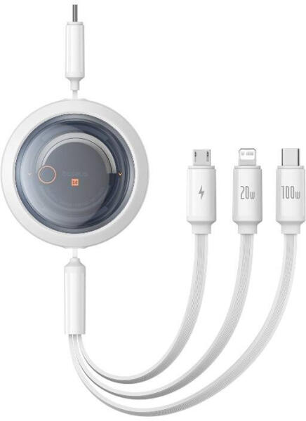 Baseus Free2draw Visszahúzható Type-C-Lightning/Type-C/MicroUSB Kábel 100W 1.1 m-Fehér