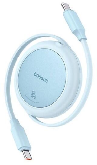 Baseus FREE2PULL MINI adatkábel (Type-C - Type-C, 60W, PD gyorstöltő, 100cm, csévélhető) VILÁGOSKÉK