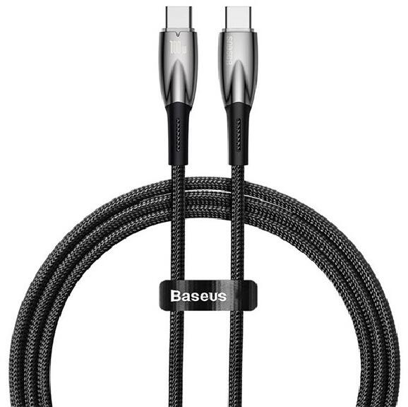 Baseus GLIMMER adatkábel (Type-C - Type-C, 5A, 100W, PD gyorstöltő, 100cm, törésgátló) FEKETE
