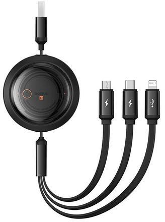 Baseus Gyors töltőkábel 3in1 Baseus Free2Draw, USB micro USB+USB-C+Lightning, 3.5A, 1.1m (fekete)