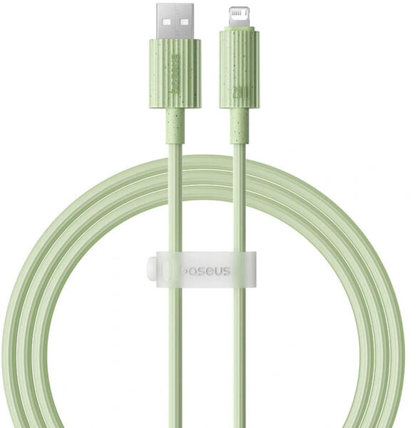 Baseus - Habitat Sorozatú Adatkábel (P10360200631-01) - USB Lightning csatlakozóval, 480Mbps, 2.4A, 2m - Természetes zöld