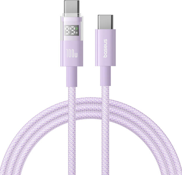 Baseus - Kijelzős Adatkábel 2 (P10382702511-01) - Gyors töltés, Type-C to Type-C, Digitális kijelző, 100W, 2m - Csillagközi Lila