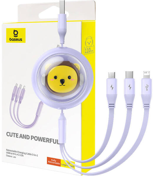 Baseus Töltőkábel 3w1 Baseus USB USB-C, USB-M, Lightning 3, 5A, 1, 1m (lila)