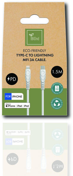 Biond USB-C -> Lightning MFI 1, 5m (Környezetbarát, lebomló anyagokból), kábel (BIO-12-TMF)