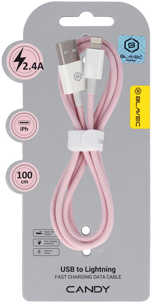 Blavec Cable Candy fonott - USB - Lightning - 2, 4A 1 méter (CCA-UL24P10) rózsaszín