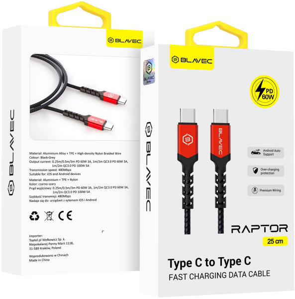 Fedezd fel a megbízhatóságot és tartósságot a Blavec Raptor kábelben. Kábelünk azoknak a felhasználóknak készült, akik kiváló minőséget és megbízhatóságot keresnek a mindennapi használat során.