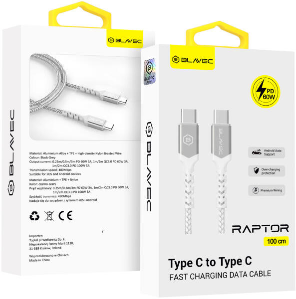 Ismerje meg a megbízhatóságot és tartósságot a Blavec Raptor kábellel. Kábelünk azoknak készült, akik a mindennapi használat során kiváló minőséget és megbízhatóságot keresnek.