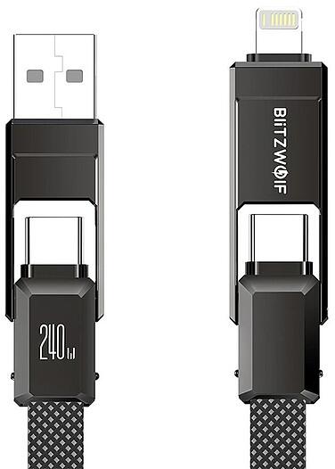 BlitzWolf BW-HDC7 4 az 1-ben USB-C+USB+Lightning kábel, 240W, 1.2m (fekete)