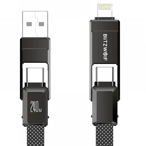 BlitzWolf USB 2.0 + USB 2.0 Type C Lightning + USB Type C Töltő/adat Fekete 1.2m BW-HDC7 (BW-HDC7)