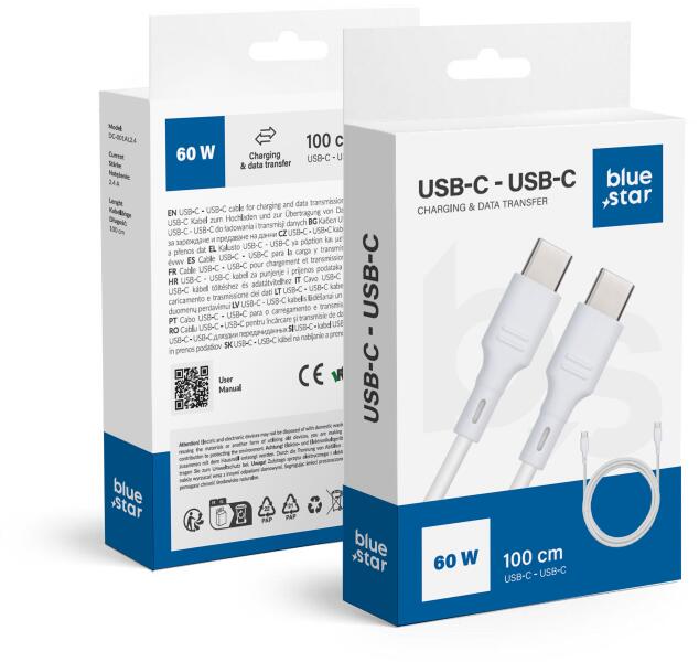 Blue Star kábel 3A 60W Type C to Type C DC-001CC3.0 1 m fehér