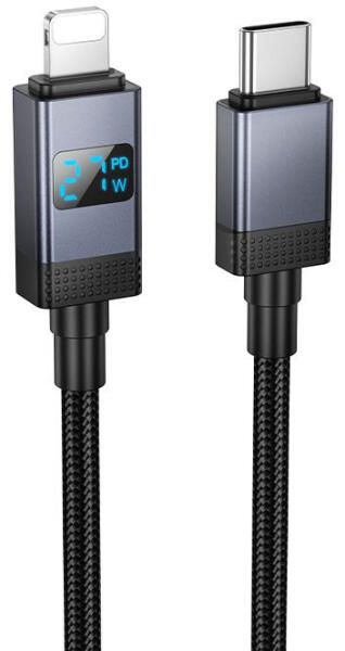 Cable USB C to Lightning Hoco PD 27W with display 1 m X118 black (6942007655064)