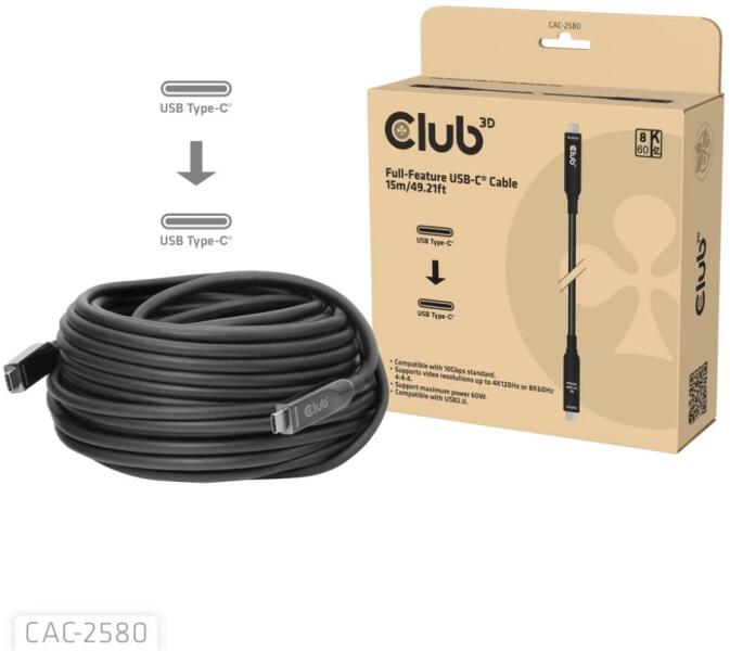 Club 3D USB 3.1 Type C Összekötő Fekete 15m CAC-2580 (CAC-2580)