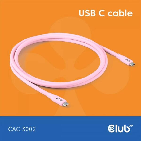 Club 3D USB 4.0 Type C Összekötő Rózsaszín 2m CAC-3002 (CAC-3002)