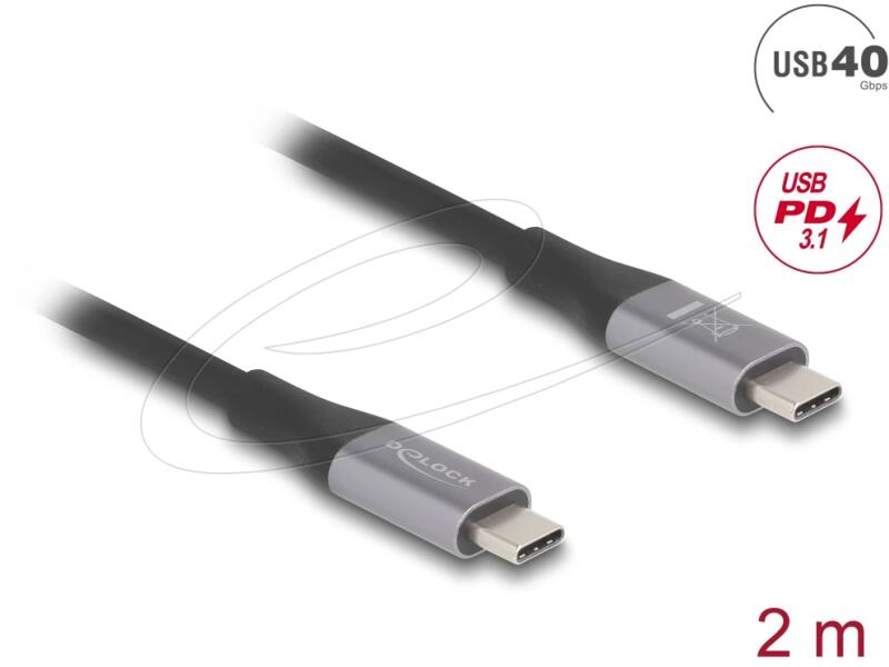 Delock USB 40 Gbps kábel USB Type-C dugó - dugó PD 3.1 240 W E-Marker 2 m szürke fém (81192)