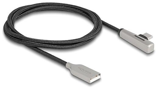 Delock Kábel USB 2.0 A-típusú apa - USB Type-C apa hajlított, LED fénnyel és gyors töltő funkcióval 60 W 1 m (80766)