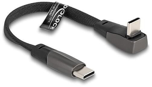 Delock USB 2.0 Laposkábel USB Type-C apa - USB Type-C apa USB Type-C apa hajlított PD 3.0 60 W 14 cm fekete (80750)
