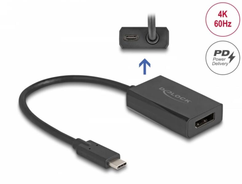 Delock USB 3.0 Type C DisplayPort 1.2/1.2a Átalakító Fekete 15cm 61059 (61059)