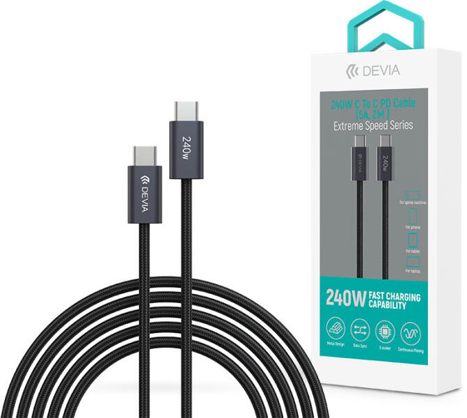 DEVIA Extreme Speed Series PD 240W Type-C/Type-C adat-és töltőkábel 2m - fekete - mobilehome