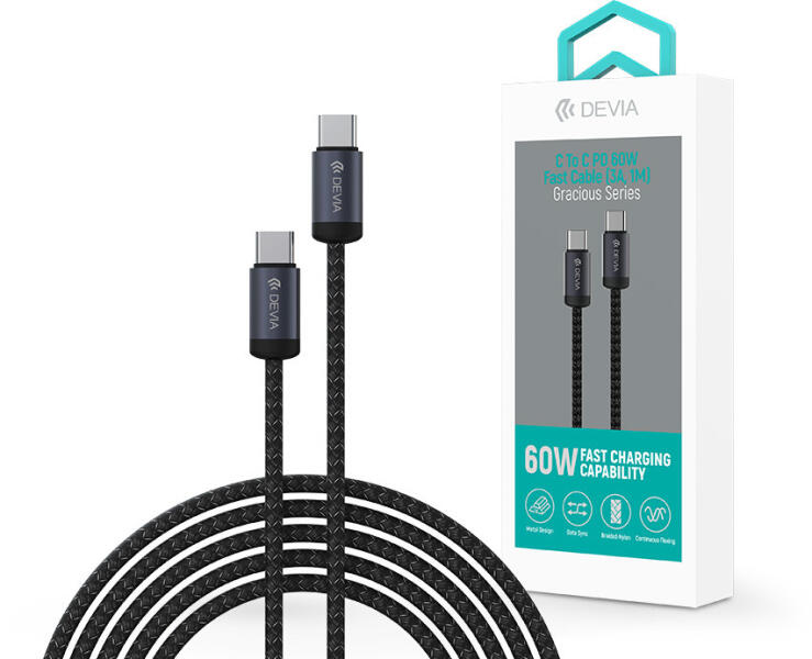 DEVIA Gracious Series 60W PD Type-C/Type-C adat- és töltőkábel 1m - fekete