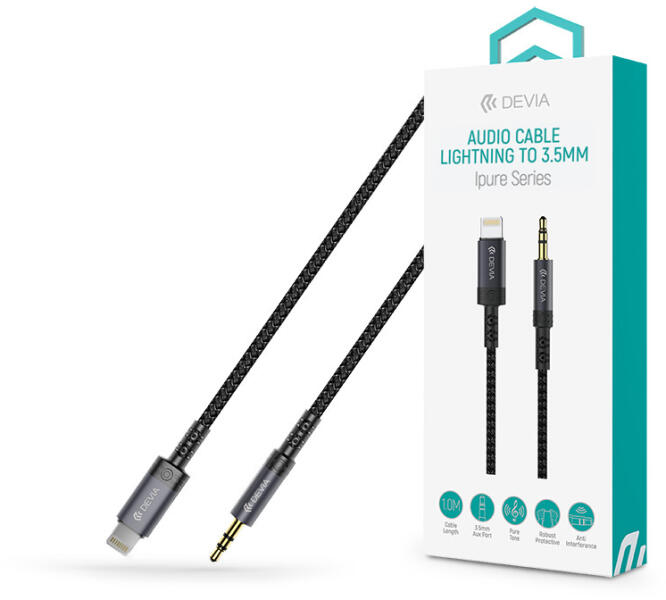 DEVIA iPure Series Lightning/AUX 3, 5 mm audió adapter - fekete