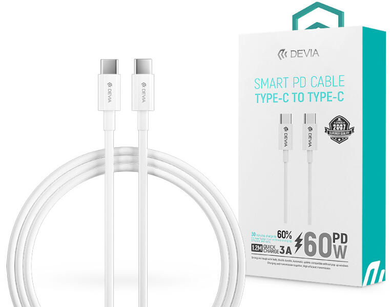 DEVIA Smart 60W PD Type-C/Type-C adat- és töltőkábel 1, 2m - fehér
