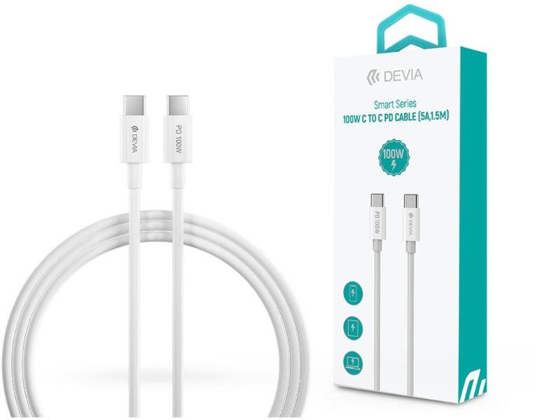 DEVIA Smart Series 100W Type-C/Type-C adat- és töltőkábel 1, 5m - fehér - coolmobile