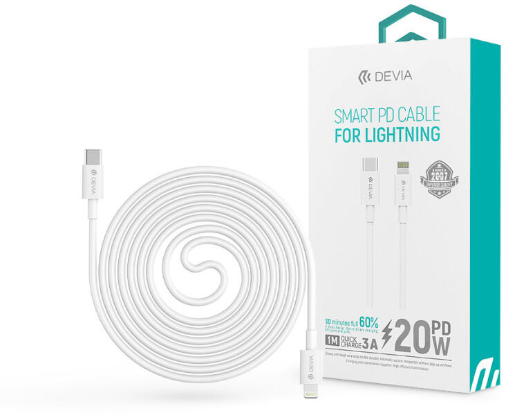 DEVIA Smart Series 20W PD Lightning/Type-C adat-és töltőkábel 1m - fehér - nextelshop