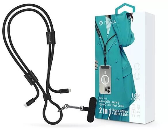 DEVIA ST124981 Cable Pro5 Woven 1, 6m 27W PD Type-C - Lightning fekete adat- és töltőkábel + nyakpánt (ST124981) - bestbyte