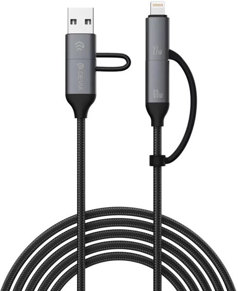 DEVIA USB 2.0 + USB 2.0 Type C Lightning + USB Type C Töltő/adat Fekete 1.5m ST121553 (ST121553)