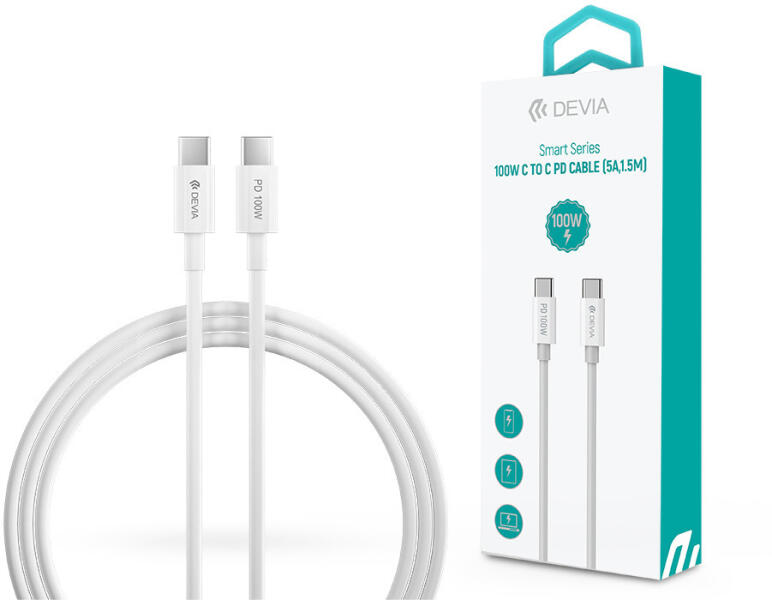 DEVIA USB Type-C - USB Type-C adat- és töltőkábel 1, 5 m-es vezetékkel - Devia Smart Series 100W C To C PD Cable - 100W - fehér - mobilehome