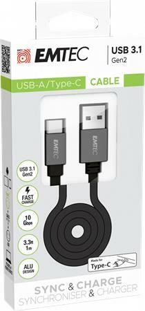 Emtec USB-A Apa - USB-C Apa Töltőkábel 1. - 2 m, Fekete