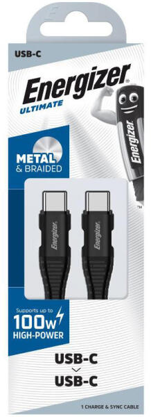 Energizer töltőkábel USB-C - USB-C 100W 2M fekete (ENE-EC541CKBK)