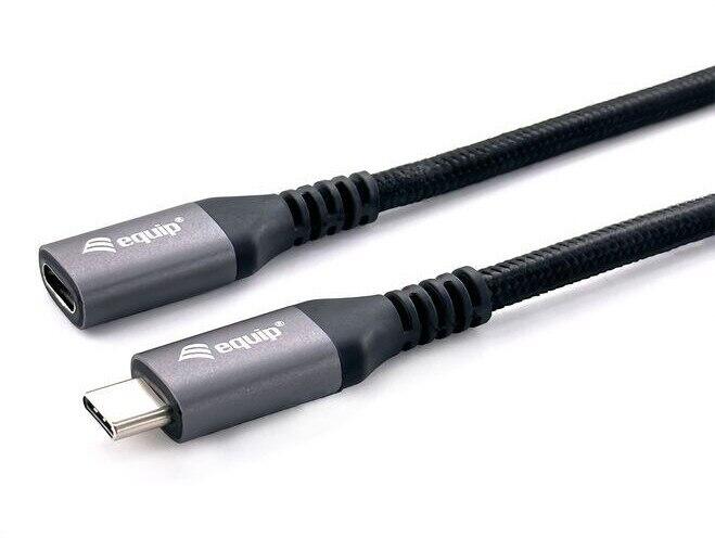 EQuip USB-C 3.2 Gen2 to USB-C Extension cable 0,5m Black, Kábel 128370 Kiegészítő, Kellék > Kábel USB kábel, USB-C, USB-C, Ultra HD 4K, USB3.2, Female/Female, 0,5m, Black, Töltő és adatkábel, Szövetborítás