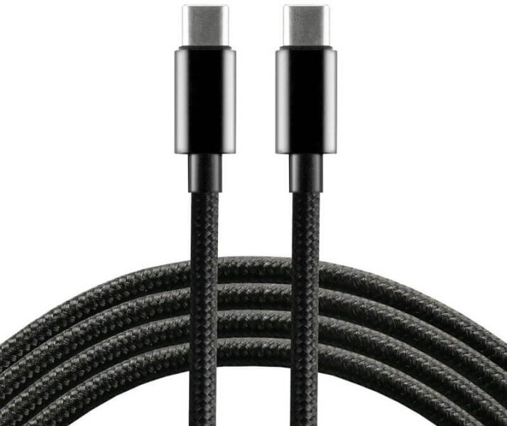 USB Type-C töltőkábel, 1 m hosszú, fekete színű szövet borítással. 60 W / 3 A gyorstöltő kompatibilis. Töltésre és adatátvitelre egyaránt használható.
