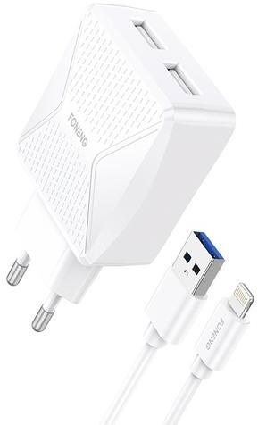 FONENG EU50 GaN töltő, 35W 2x USB-C-Lightning (fehér) (GAN35 C - Light)