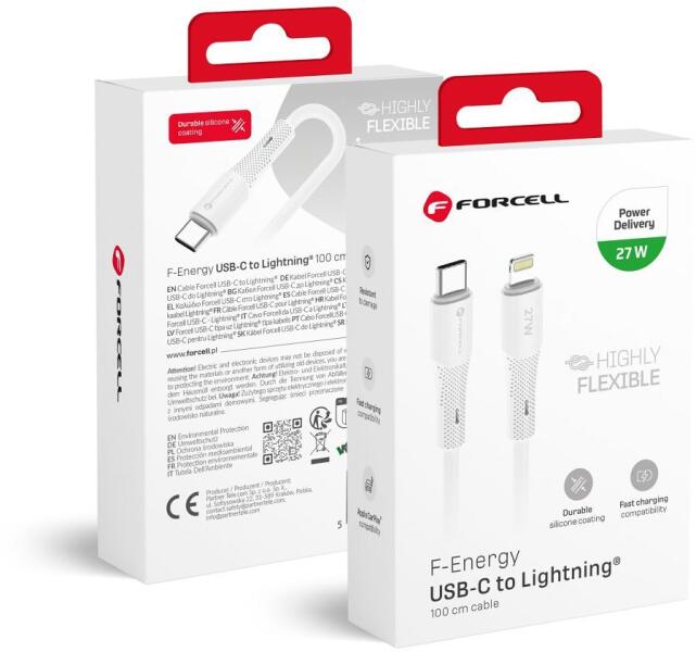 Forcell F-ENERGY C346 Type C - Lightning kábel 3A 27W Szilikon 1 m fehér